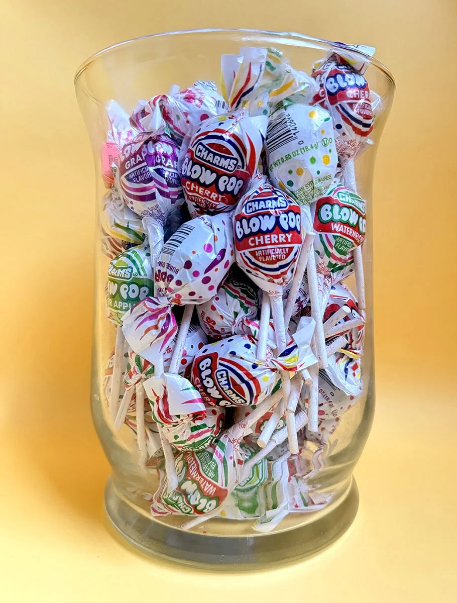 When her time at my office was over and she finished working for me, she gave me a jar of suckers as a parting gift. Clever and thoughtful. That was in 2010, but I’ve kept refilling and using it ever since.